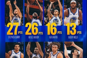 赛后勇士发布数据海报:本场比赛八人得分上双!