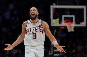 太阳球员狄龙上半场表现相当出色,尤其是第二节后半段,他连续单打高难度命中帮助太阳继续扩大分差。