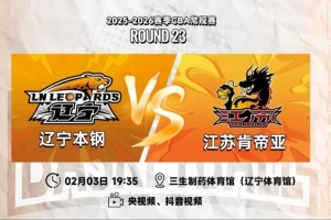 2月3日19:35,2025-26赛季CBA常规赛第二十三轮,江苏肯帝亚将远赴辽宁,迎来球队第一阶段的收官战,对阵辽宁本钢。