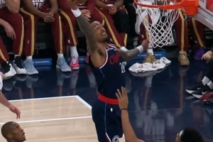 一飞冲天!坎宁安小打大冲进内线 起飞滑翔单臂暴扣