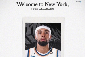 球队官方微博发文欢迎阿尔瓦拉多:“🗽欢迎来到纽约,六哥阿尔瓦拉多💙🧡来了就是自己人,恭喜成为一名尼克斯💙🧡”