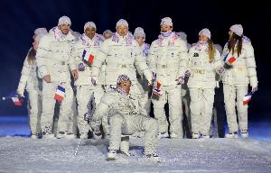 法国队参加越野滑雪项目的运动员朱尔斯·拉皮埃尔无疑贡献了令人难忘的一幕,他在运动员入场仪式中举着牌子先一步入场,却脚下一滑摔倒在地,随后法国队其他运动员紧随其后也进入场地。