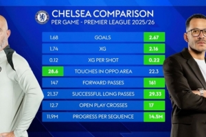 体育资讯2月7日讯 天空体育统计了切尔西上任主帅马雷斯卡、现任主帅罗塞尼尔带队的数据,并做出对比。