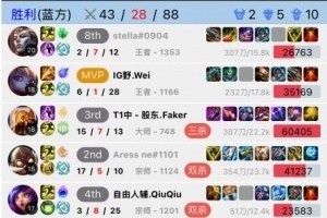 体育资讯2月8日讯 根据韩服排位统计小程序显示,今日凌晨Wei韩服排位排到Faker,Wei使用波比,Faker使用沙皇。