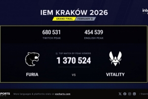体育资讯2月9日讯 根据Esports Charts网站的数据统计,IEM克拉科夫的最高收视人数为137万人,发生在Vitality对阵FURIA的总决赛中。这一数据超越了2025年的IEM卡托维兹(129万人)成为历史上收视率最高的非Major赛事,同时在历史收视率总榜中也能排名第8位!