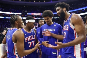 截至目前,76人以30胜24负的战绩排在东部第6名。