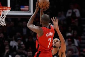 在谈到杜兰特时,范弗里特表示:“KD本赛季改变了我看待篮球的所有方式。因为对他来说,一切看起来都太轻松了。他真的很放松,从来不乱来,就是等着机会。他可以几分钟都摸不到球,也不说话,就站在底角。然后只要他有机会出手,就不会投丢。他真的不怎么投丢。”