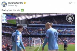 体育资讯02月20日讯 曼城将在本轮英超迎战纽卡,赛前曼城官方社媒分享了一段3年前哈兰德对纽卡连续造角球拖延时间的欢乐片段。并且配文:“守住胜果”。