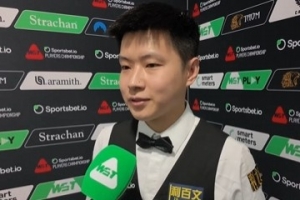 赵心童: 对。其实整场比赛我跟马克·艾伦都打得不是特别理想。我觉得今天的球台速度有点慢,所以我跟马克·艾伦在很多走位上面都走得不是特别顺利。所以到最后其实我们都不是以最好的状态在进行这场比赛,但我很高兴能拿下这场比赛。