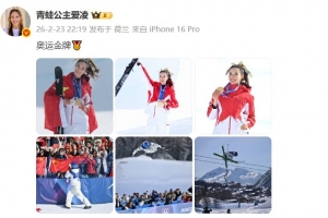 谷爱凌在米兰冬奥会自由式滑雪女子U型场地技巧赛摘金,本届冬奥会1金2银,生涯斩获3金3银6枚奖牌。
