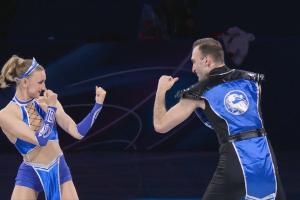 正是依托表演滑的创作自由度,梅特尔基娜与贝鲁拉瓦决定以《真人快打》为核心主题完成表演,配乐选用了《真人快打》电影的经典主题曲《Techno Syndrome》。