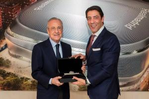 据皇马官方介绍,互赠礼物仪式在伯纳乌的皇马主席包厢进行。
