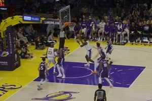 偷袭小同志!老詹示意压节奏 随后突然启动 空切暴扣杀死比赛!