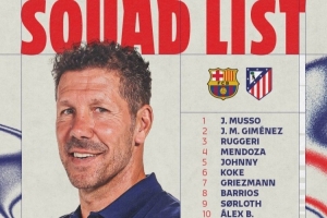 体育资讯3月3日讯 北京时间明天凌晨4点,马竞将在国王杯半决赛次回合比赛中客场对阵巴萨,首回合马竞4-0取胜,马竞公布了此役的球员名单。