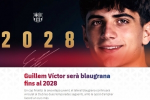 体育资讯3月10日讯 巴萨官方消息,俱乐部与小将吉列姆·维克托续约至2028年,合同含续约一年条款。
