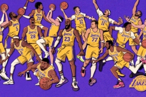 体育资讯4月18日讯 今日,湖人官推晒出一张全员漫画海报,预热季后赛。