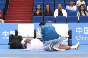 全运会网球项目今天展开单打1/4决赛的较量,商竣程对阵布云朝克特,首盘比赛,商竣程一度申请医疗暂停,3-6布云朝克特。