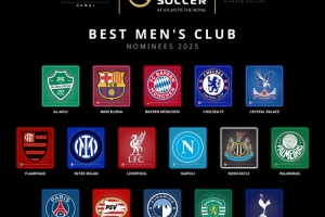 2025年环球足球奖最佳男足俱乐部候选名单: