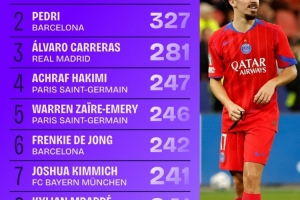 体育资讯11月21日讯 数据显示,维蒂尼亚的进攻三区完成传球次数位列五大联赛第一。
