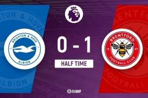 体育资讯11月22日讯 北京时间23:00,英超第12轮布莱顿vs布伦特福德,比赛在美国运通社区球场打响!上半场,巴莱巴送点,伊戈尔·蒂亚戈点射破门!半场结束,布莱顿暂时0-1落后布伦特福德。