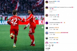 体育资讯11月23日讯 拜仁在本轮德甲焦点战主场6-2逆转弗赖堡,17岁小将卡尔在上半场和奥利塞相互传射,帮助球队扳平比分。