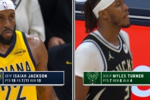 GIF-以赛亚杰克逊强攻字母哥打成2+1