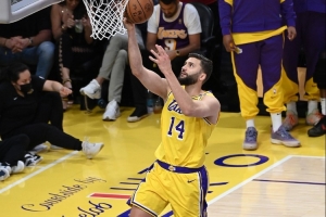 “展望未来,如果湖人将轮换扩大到10人,他们必须认真考虑使用克莱伯。即使不扩大轮换,如果真的需要调整,也许应该适当减少一些文森特的上场时间,让湖人队整体上更‘高大’一些,也许我们能更多看到克莱伯和海斯,或者克莱伯和艾顿的双塔阵容。因为我认为他能够适应这类阵容,让湖人整体体型更有优势。”
