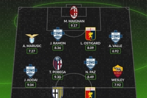后卫:亚当·马鲁西奇(拉齐奥,7.27分)、拉蒙(科莫,8.36分)、莱奥·厄斯蒂高(热那亚,8.09分)、亚历克斯·瓦莱(科莫,6.92分)