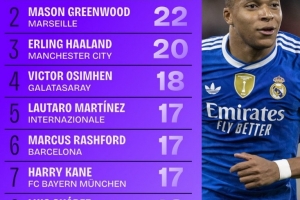 体育资讯11月27日讯 数据网站Squawka盘点了本赛季欧冠射门次数榜,其中姆巴佩居首,具体如下: