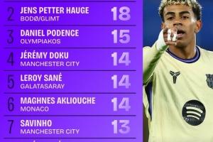 1、亚马尔(巴萨)18次