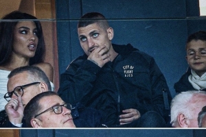 法甲官方社媒晒出照片,维拉蒂回到王子公园球场,现场观看老东家巴黎的这场比赛。