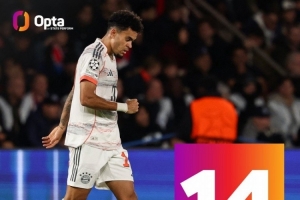据Opta统计,迪亚斯已在欧冠打进14球,追平杰克逊-马丁内斯,并列成为欧冠历史进球最多的哥伦比亚球员。