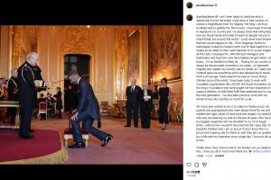 我无法用言语形容今天对我来说是多么特别的一天,一个在东伦敦出生的男孩,从国王手中接过骑士爵位勋章。