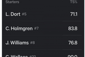 真实命中率=全场得分/[2×(全场出手次数 + 0.44 × 罚球出手次数)]