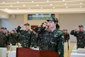 张雨霏作为领誓人,带领所有参训的运动员、教练员及辅助人员进行入队宣誓;运动员代表潘展乐及教练员代表金浩,分别带领运动员和教练员、辅助人员进行反兴奋剂宣誓;军训营营长王福利介绍军训内容,并对全体参训人员提出纪律要求。