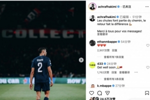 体育资讯11月6日讯 阿什拉夫在对阵拜仁的比赛中受伤,球员发文。