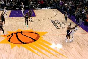GIF-社会龙与詹姆斯对撞,前者吃T