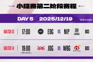 体育资讯12月19日讯 2025德玛西亚杯第二阶段比赛将在今日开始,首场17点EDG vs NIP,次场JDG vs WBG。