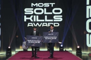 体育资讯12月19日讯 HLE上单Zeus获得单杀王奖项,Gumayusi代领奖: