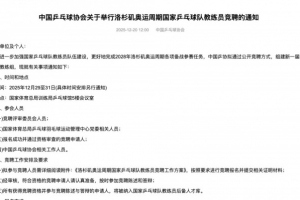 体育资讯12月20日讯 新华社报道,中国乒乓球协会官网于20日发布《中国乒乓球协会关于举行洛杉矶奥运周期国家乒乓球队教练员竞聘的通知》,正式启动新周期国家队教练员公开竞聘工作。