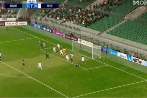 没机会起脚啊!盖伊禁区外过掉出击的牟鹏飞,传中最终被海牛封堵
