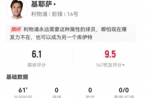 体育资讯12月28日讯 利物浦在本轮英超对阵狼队,本赛季首次在联赛首发的小基耶萨本场数据如下: