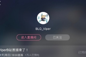 体育资讯12月28日讯 B站预告Viper直播首秀:已有1万人预约。
