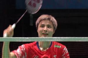 第一盘开局石宇奇1-6落后,以7-11落后安东森进入局间休息。回来过后石宇奇连得8分15-11拿到领先优势。但随后安东森也连得5分。最终第一盘石宇奇22-20拿下。