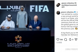 因凡蒂诺社媒晒出签约照片,并写道:”我很高兴确认,一项全新的年度世界足球颁奖盛典将于2026年起在迪拜正式启动,届时它将成为国际足联官方颁奖典礼,汇聚全球足坛精英共同庆祝并表彰过去一年的卓越成就。