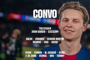 体育资讯1月3日讯 北京时间明天凌晨4点,巴萨将在西甲第18轮比赛中客场对阵西班牙人。巴萨公布了此役的球员名单。佩德里、奥尔莫在列,阿劳霍继续缺席。