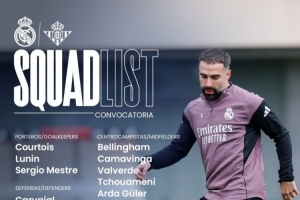 体育资讯1月4日讯 北京时间1月4日23:15,西甲第18轮,皇马对阵贝蒂斯,皇马公布本场名单,卡瓦哈尔回归,姆巴佩伤缺,马斯坦托诺在列。