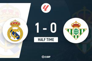上半场补时2分钟,皇马1-0贝蒂斯。