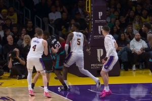湖人球员不满!申京倒地肯纳德几乎形成抢断 裁判给乌度卡暂停
