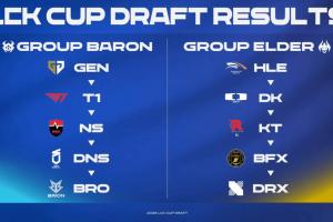 体育资讯1月9日讯 LCK杯新赛季分组出炉,远古巨龙组HLE、DK、KT、BFX、DRX,大龙组GEN、T1、NS、DNS、BRO。